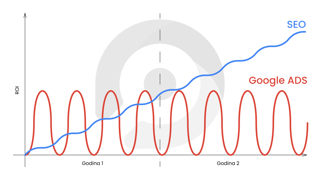 Kontinuiran rast, gdje kombinacijom plaćenih oglasa na pretraživačima i optimizacijom za pretraživače (SEO) postižemo brze rezultate i dugoročnu izgradnju i pozicioniranje web sajta.